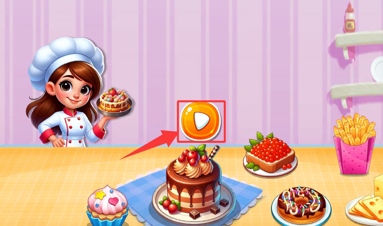 2、点击红色框框的三角形进入游戏。