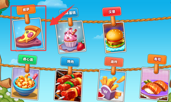 4、进去游戏之后有7个模式,点击披萨进去。