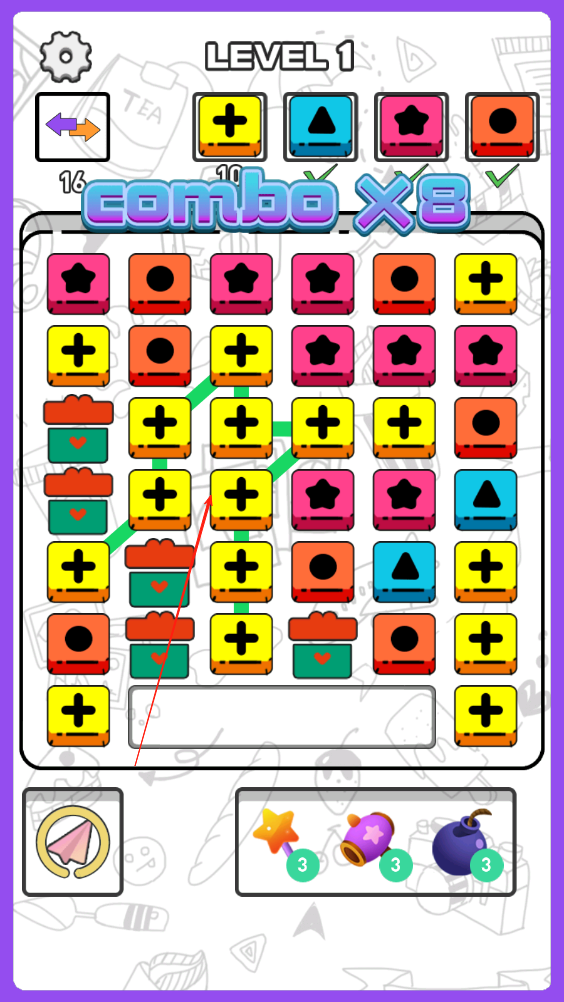 3、当消除的方块数量达到关卡要求,或在规定条件内完成目标时,即可顺利通关,解锁下一关。