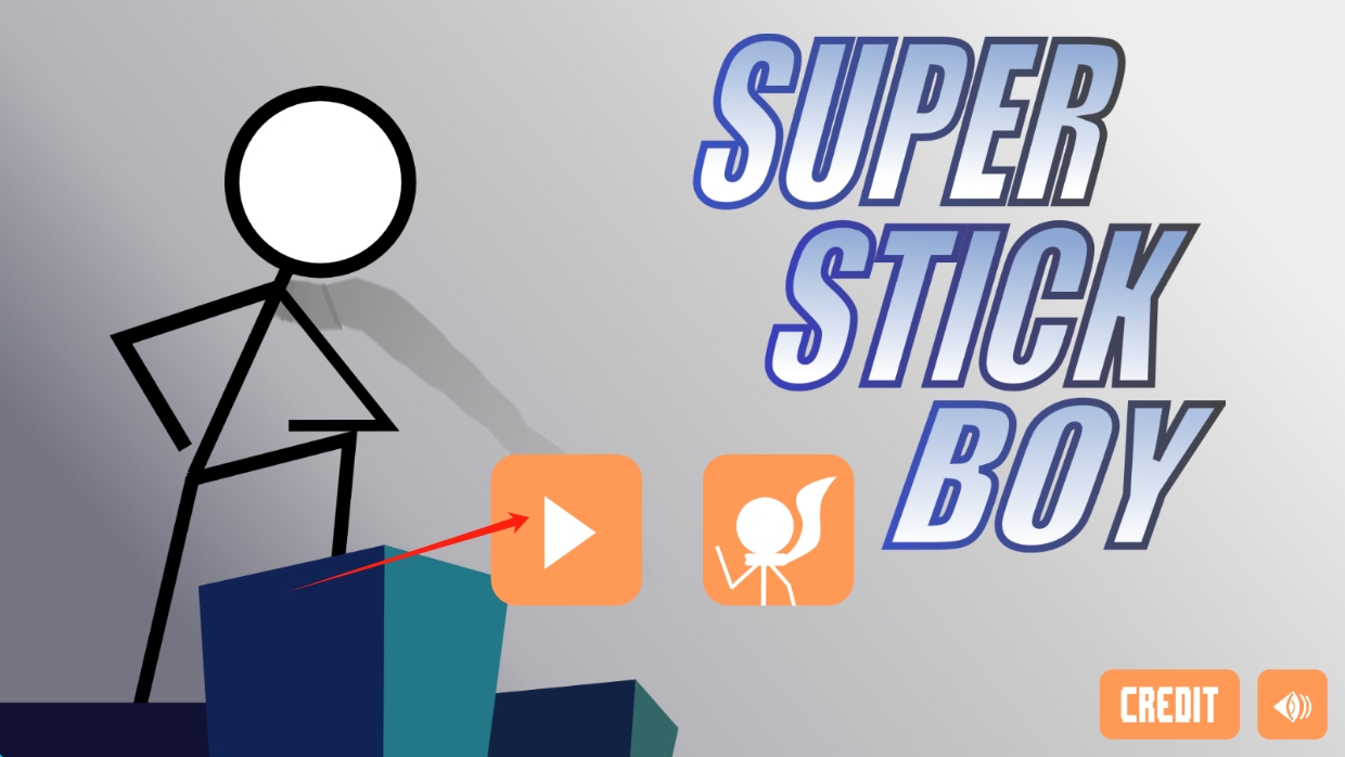 1、在Super-Stick-Boy游戏启动界面,跟随箭头提示,点击开始按钮,开启超级火柴人男孩冒险,点击开始。