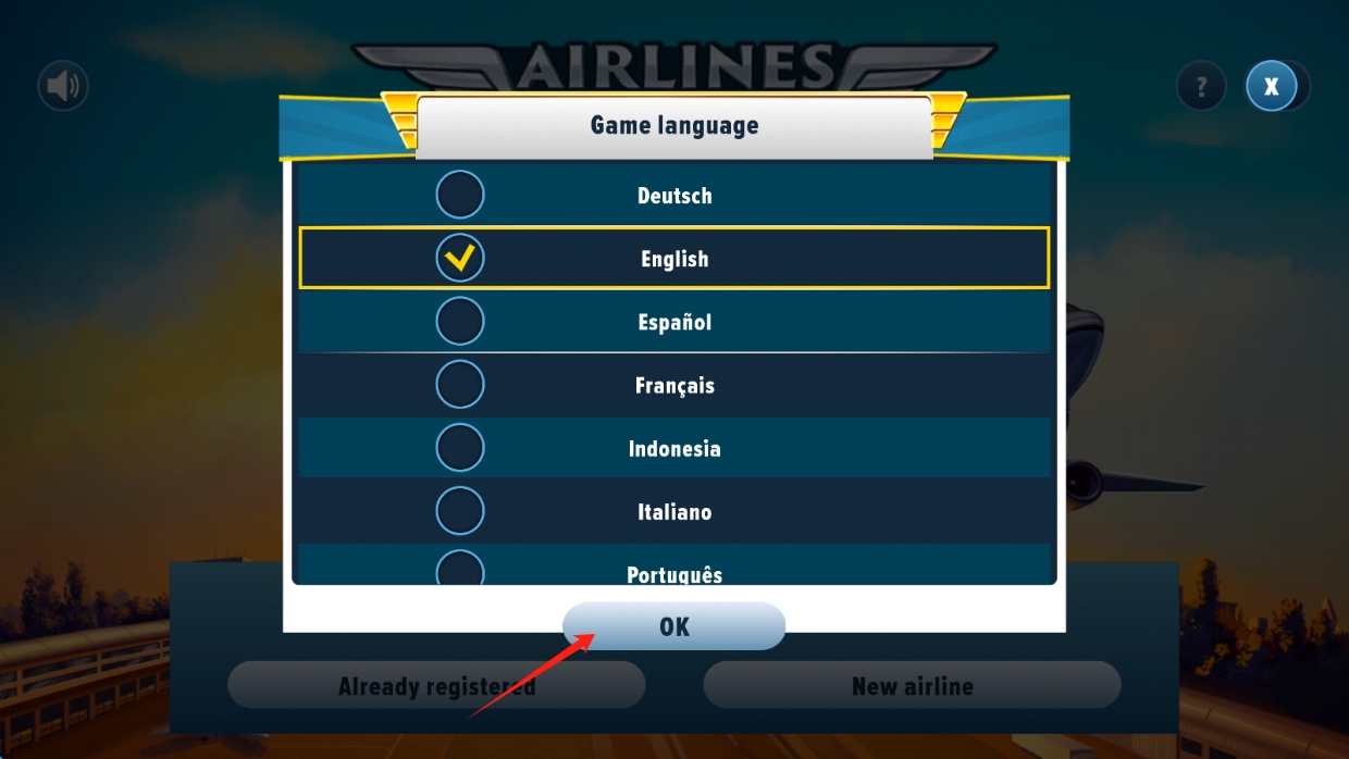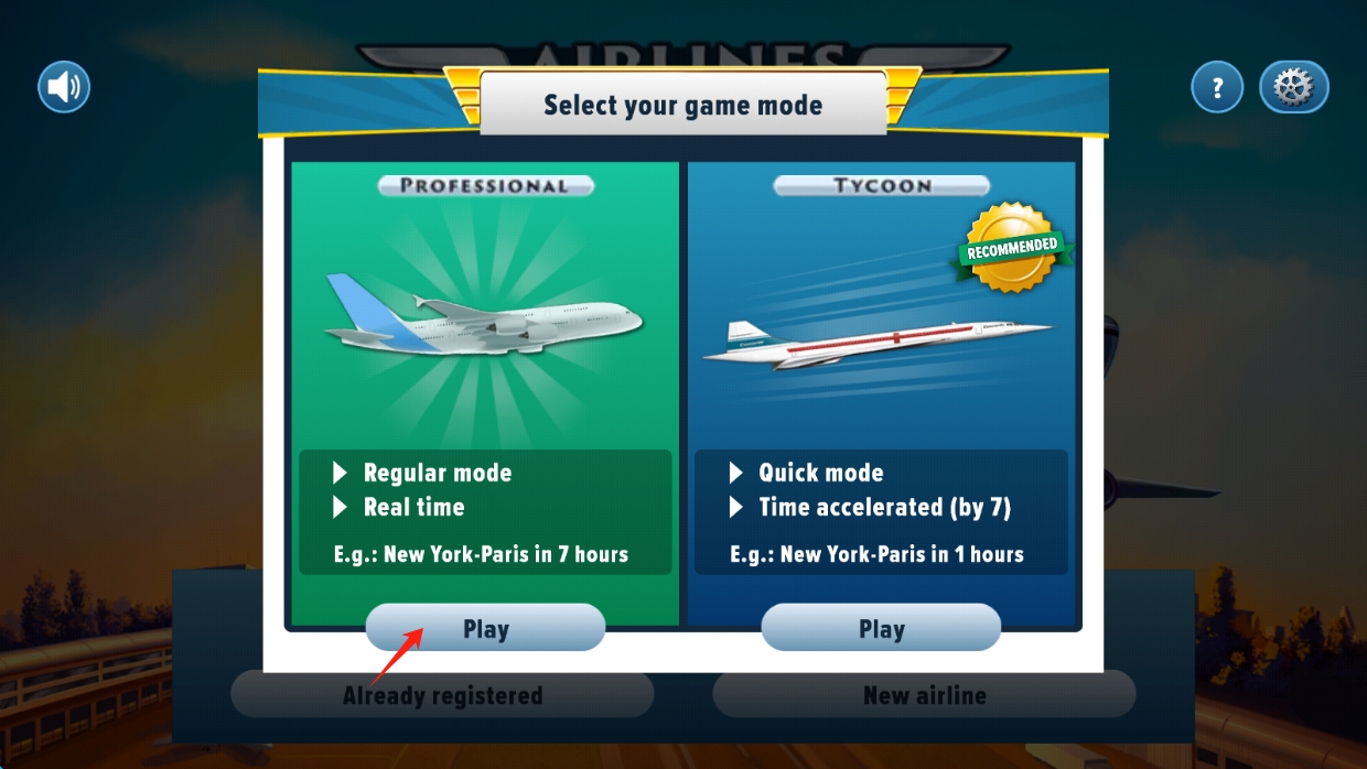 1、在Airlines游戏模式选择界面,跟随箭头提示,选择合适的游戏模式,点击开始游戏。