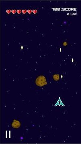 2、进入游戏操作场景,根据箭头提示,操控飞船,躲避陨石,收集道具,滑动移动人物。