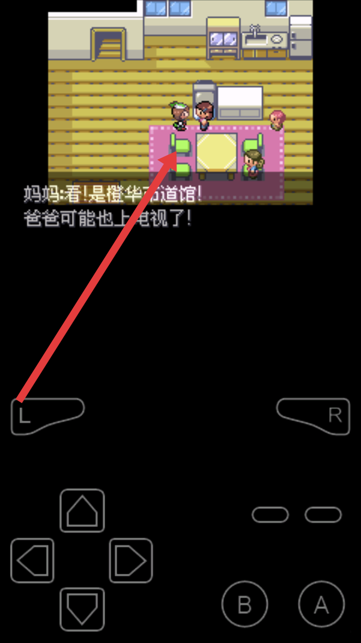 3、回到家中,可以与箭头指向的妈妈对话,听取关于橙华道馆的提示,推进后续剧情的发展。