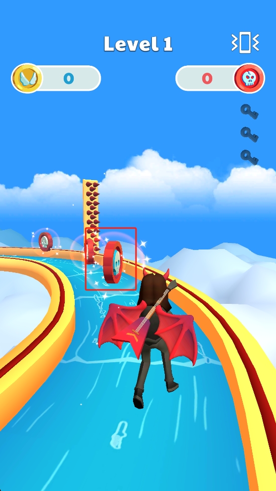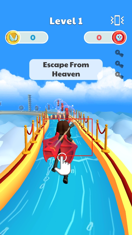 1、这关我们操控背吉他、披红翼的角色沿天国跑道逃亡,滑动屏幕躲避尖刺、转轮等障碍,开启逃离之旅。