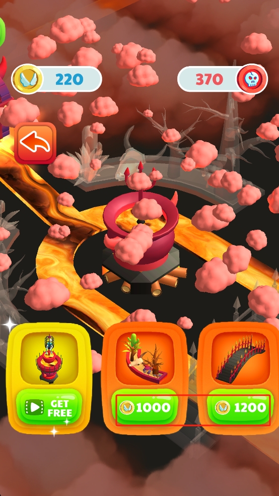 3、抵达地狱后,消耗金币来解锁建筑,构建地狱场景,完成关卡并开启后续的建造挑战。