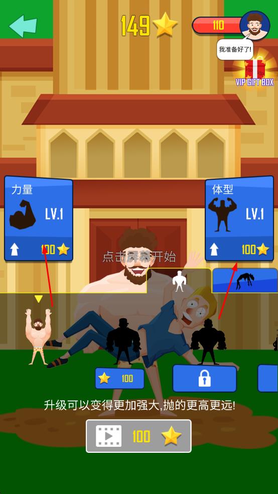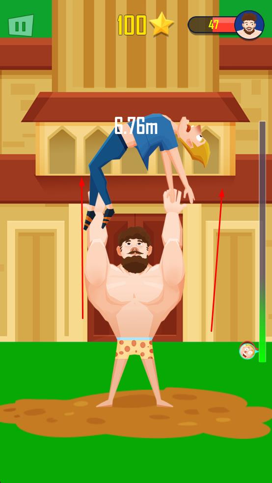 1、操控肌肉男角色,通过点击或滑动屏幕控制角色将另一个角色抛起。
