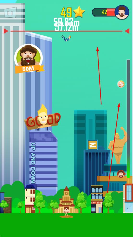 2、注意上方的高度标识和星星数量,为获得更高分数奠定基础。