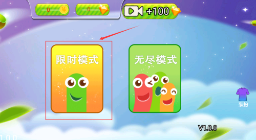 1、点击红框限时模式按钮,开始计时挑战小怪物收集。