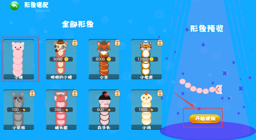 3、点击红框开始游戏按钮,使用萌萌小猪进入冒险。