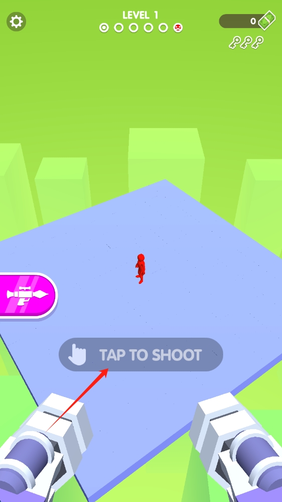 1、在游戏启动界面,跟随箭头提示,点击TAPTOSHOOT,开启射击冒险,进入游戏世界。