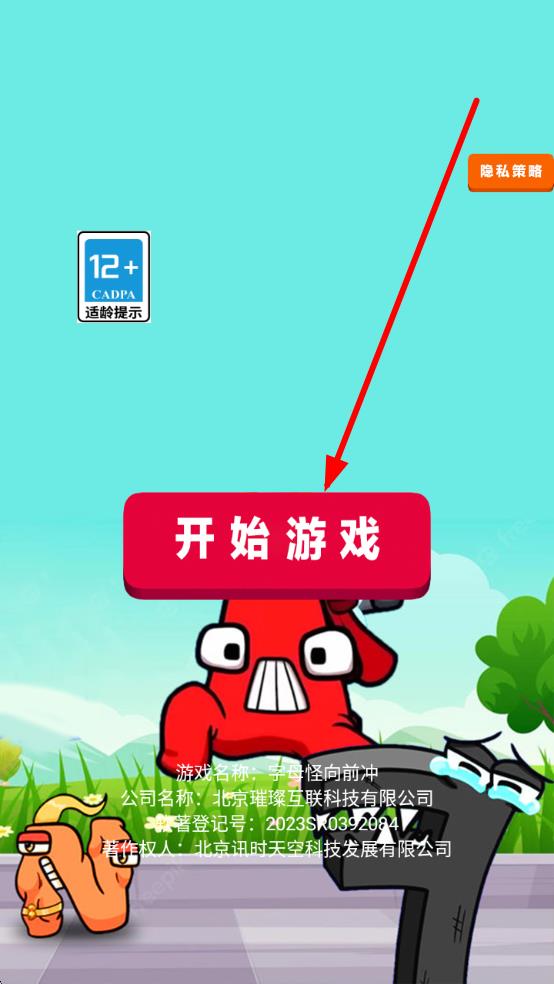 1、进入游戏初始界面,看到醒目的开始游戏红色按钮,点击它就能开启这场字母怪的冒险之旅,进入关卡挑战。