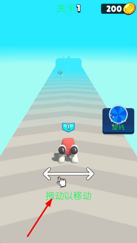 2、根据提示拖动以移动,用手指按住字母怪,左右拖动屏幕下方的箭头区域,控制字母怪在跑道上移动,朝着终点前进。