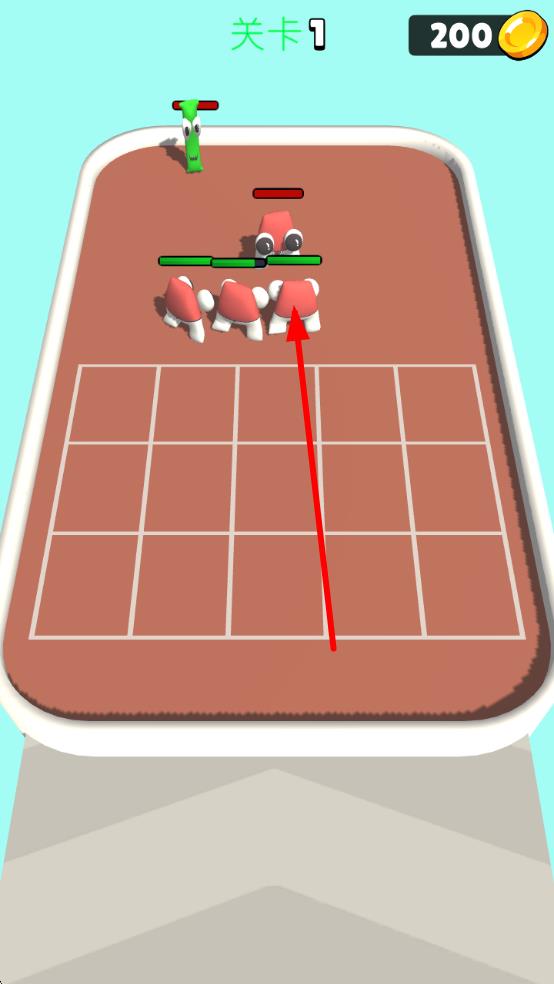 3、到达场地,操控字母怪靠近并撞击场上的粉色小怪,通过碰撞攻击敌人,同时注意躲避绿色敌人的攻击,成功击败敌人。