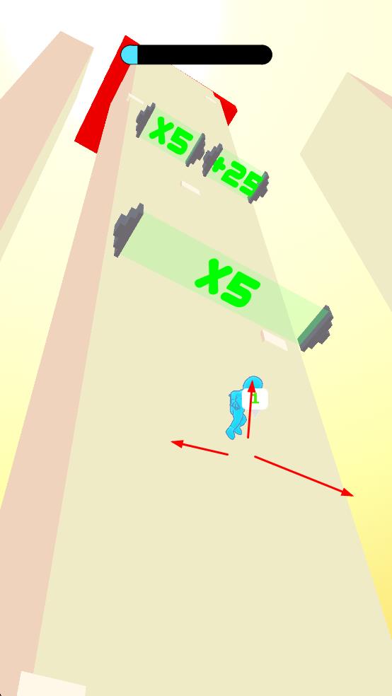 1、操控蓝色小人角色在跑道上移动,角色可前后左右移动,这是开启游戏的关键操作,顺利开启游戏之旅。