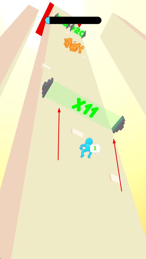 2、角色可以通过绿色的X5等区域,增加队伍的人数,同时注意上方的进度条,为完成关卡任务奠定基础。