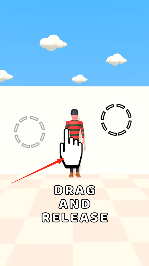 1、在胶带封封封界面,拖动人物并释放让其弹射出去,通过调整拖动方向和力度,控制人物弹射轨迹尝试触发不同效果,体验弹射操作机制。