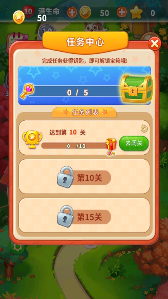3、关卡目标达成:按每关要求完成消除数量或达成分数,剩余时间越多得分越高,达成三星可解锁隐藏关卡,获得更多道具奖励。
