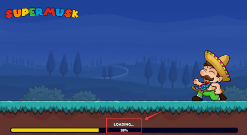 1、等待红框LOADING加载到38%,准备开始SUPERMUSK游戏。