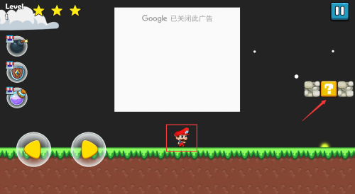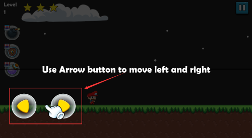 3、点击红框黄色方向键,控制马里奥左右移动闯关。