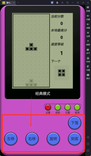 1、玩家通过方向键精准控制方块旋转和移动,需要预判最佳落点位置,巧妙摆放以消除更多行数获得高分。