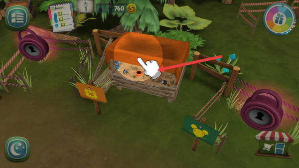 2、资源收集与利用:可在旅馆周围收集金币和动物食物,这些资源是购买道具、玩具、装饰的关键,通过日常经营积累资源,为动物们添置更舒适的设施,提升它们幸福感。