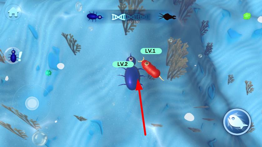 1、进入游戏后选择初始微生物角色,在新手引导中学习移动、瞄准和吞噬的基础操作,熟悉周围环境中可吞噬的弱小生物。