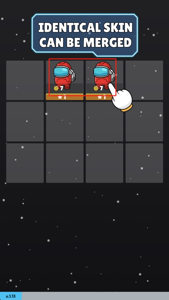 1、发现两个相同的红色宇航员皮肤,按照相同皮肤可合并规则,把它们拖动到一起完成合并,以此提升角色等级。