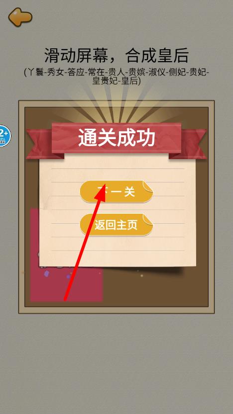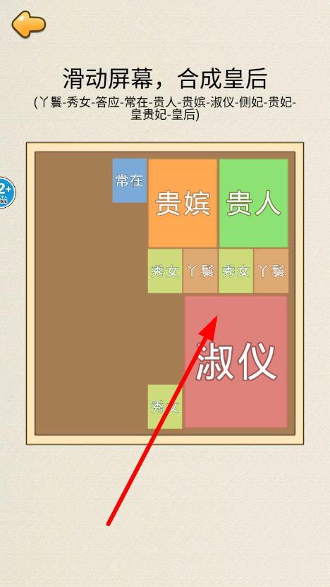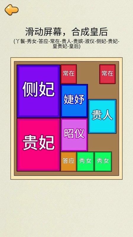 1、进入游戏后先熟悉初始界面中不同妃位的方块形象,学习通过上下左右滑动屏幕,让相邻且相同等级的妃嫔方块碰撞合并,完成从低阶到高阶的首次升级。