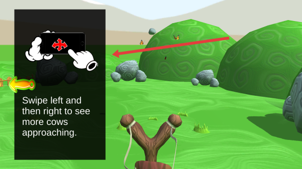 2、进入关卡后,按照Swipe-left-and-then-right提示,左右滑动屏幕查看更多靠近的牛群目标。