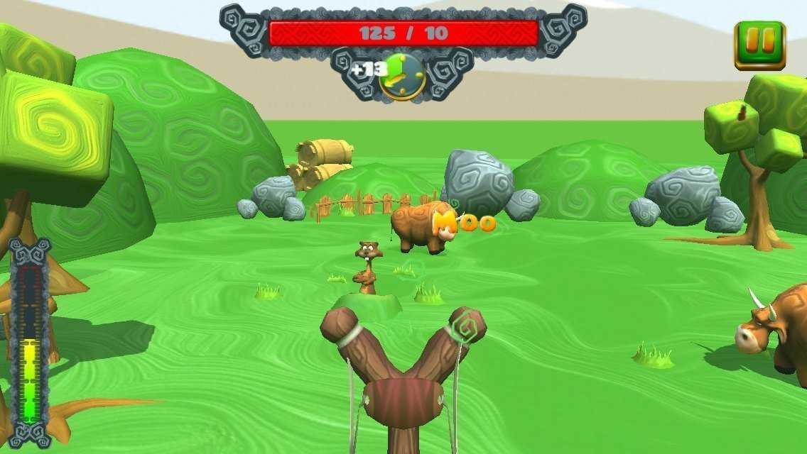 1、弹弓射击牛群:通过弹弓射出石头击打牛群,平静的牛群会因被击中而作怪,在射击互动中开启冒险,感受独特的游玩设定。