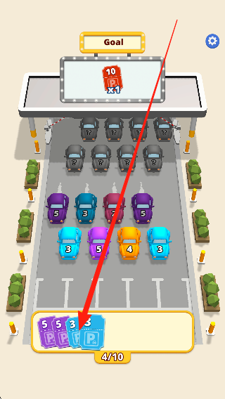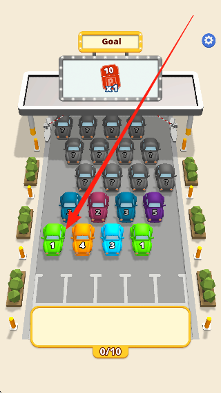1、进入游戏场景,查看提供的车辆,了解合并规则和停车区域位置,准备合并首辆车辆并尝试停放。