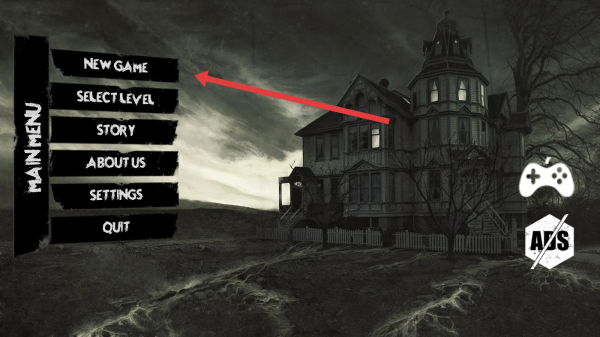 2、在主菜单界面,通过点击NEW-GAME选项,开启新游戏流程,进入恐怖风格的游戏场景。
