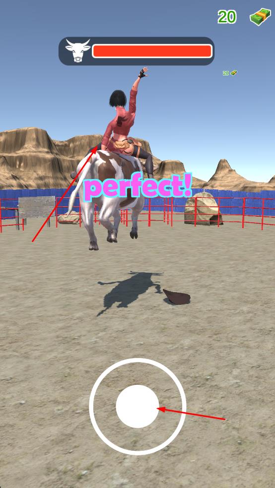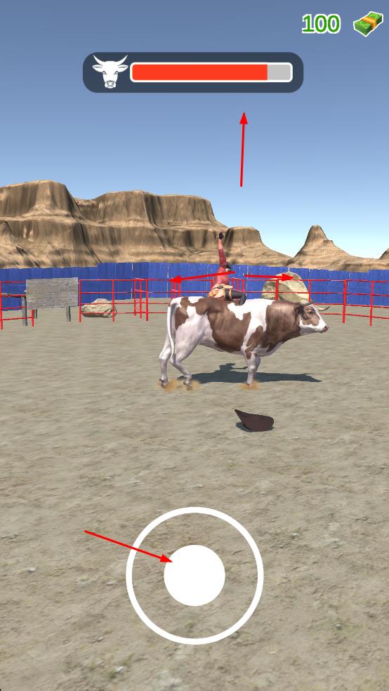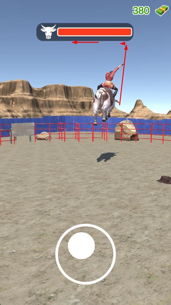 1、控制平衡坚持骑乘:骑上牛背后,通过操作保持身体平衡,应对牛的跳跃、翻滚等动作,避免被颠下来,在牛背上坚持的时间越久,获得的分数也就越多。