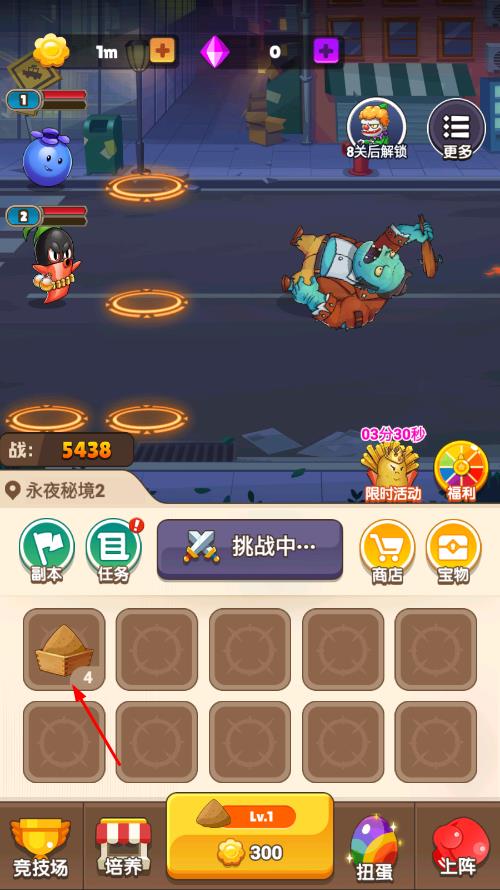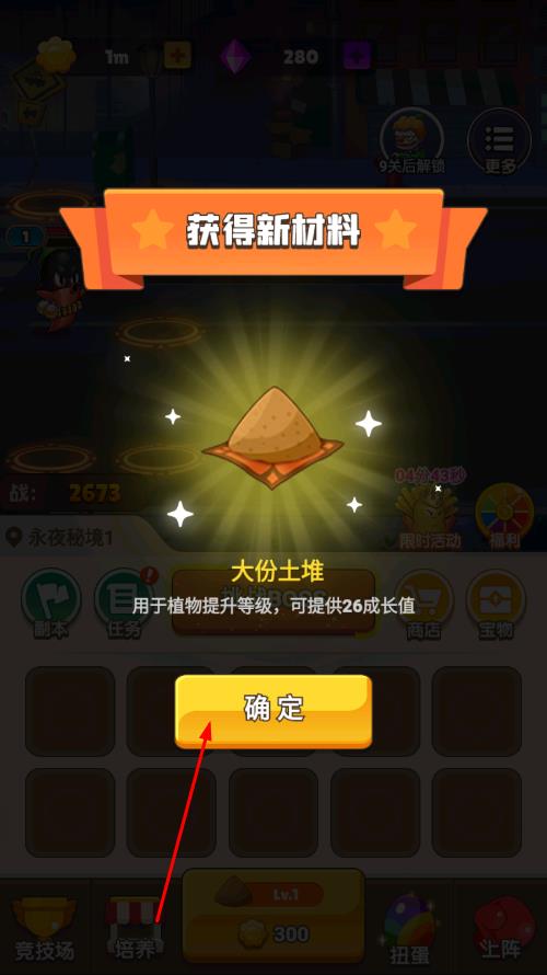 1、在主界面可以看到当前的关卡信息,战斗力数值,以及各种功能按钮,点击培养板块中类似土壤图标,可消耗资源进行植物培养。