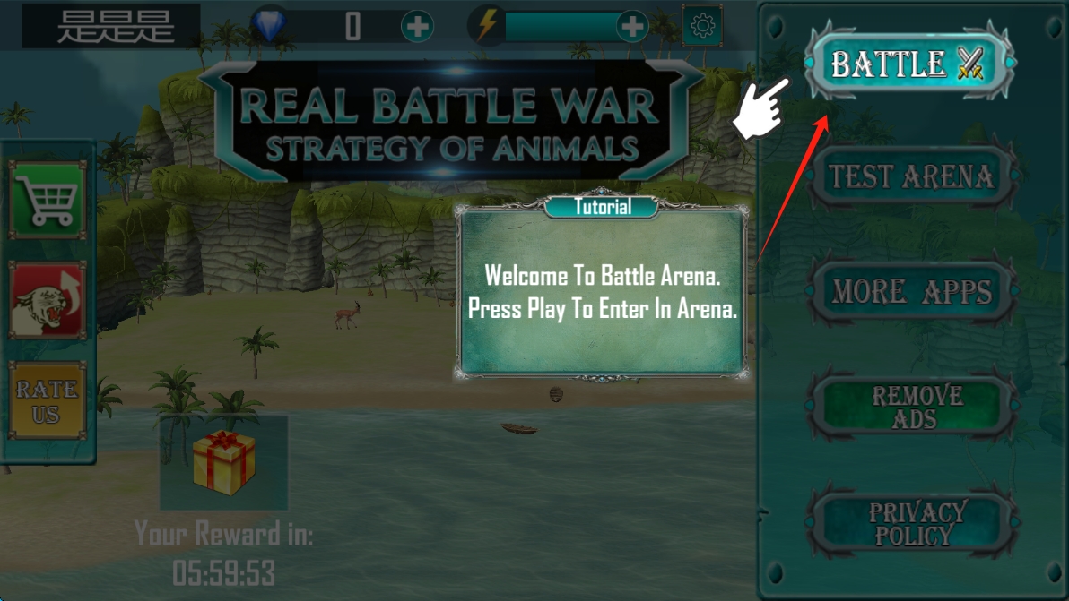1、启动游戏后,点击BATTLE,进入战斗模式,开启动物策略对战,体验策略乐趣。