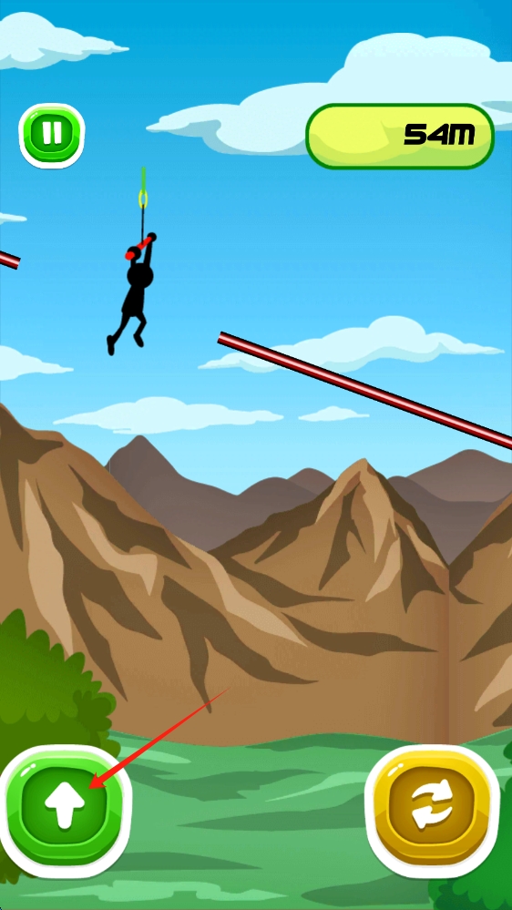 1、操控火柴人冒险:玩家操控火柴人在关卡中前行,通过控制秋千的摆动来移动,跨越各种障碍,朝着终点不断前进,感受冒险的刺激。