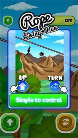 1、启动游戏后,点击黄色播放按钮,进入绳索秋千冒险,体验刺激的空中移动,点击开始游戏。