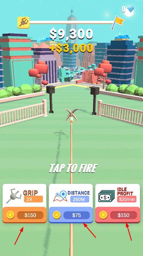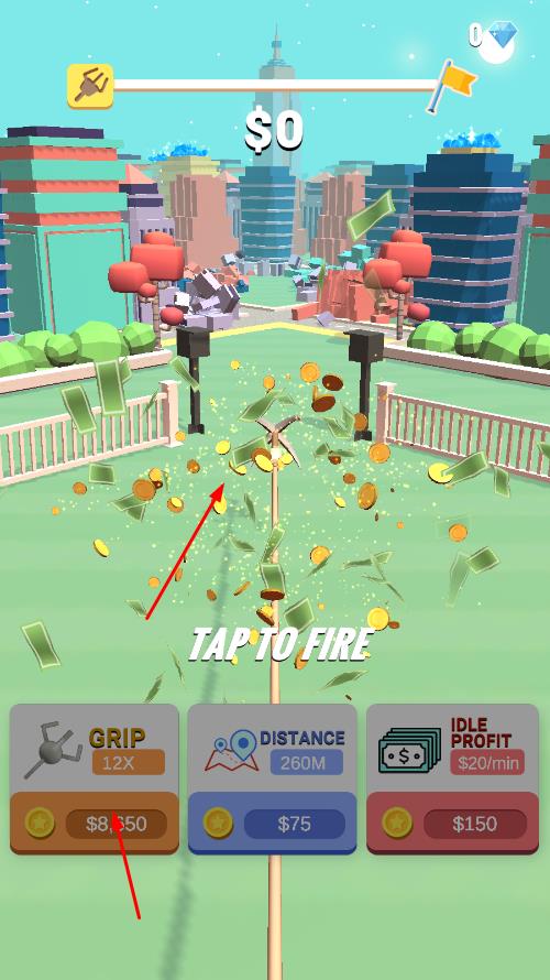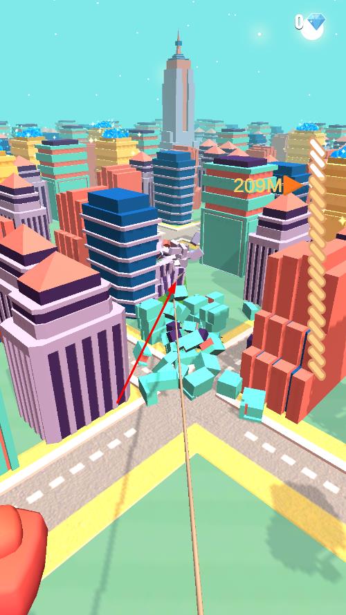 3、不断发射钩子,钩住并撞击物体,积累更多金币,解锁更多新的城市和玩法。