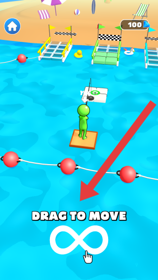 1、玩家通过拖拽屏幕DRAGTOMOVE,即拖拽移动,绘制线条等操作,帮助角色在不同场景的平台上移动、竞速,画面呈现的是其基础操作引导环节。