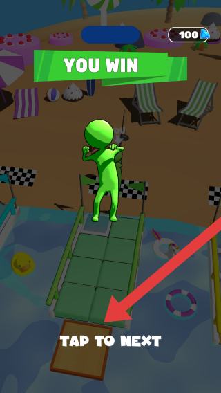 3、显示本关我们获得了胜利,可点击TAPTONEXT提示点击进入下一关,属于完成关卡后的结算界面。
