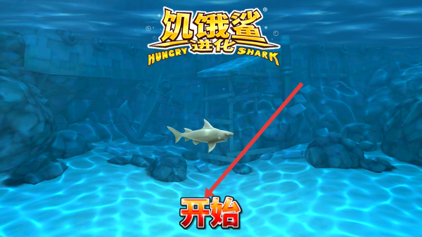 1、在饥饿鲨:进化初始界面中,按照红色箭头指引处点击开始按钮,进入游戏控制说明页面。