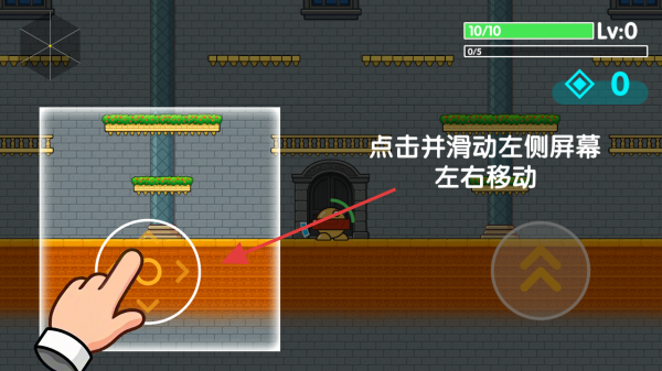 1、点击并滑动左侧屏幕,控制角色左右移动,开始进行游戏任务,推进游戏的剧情发展。