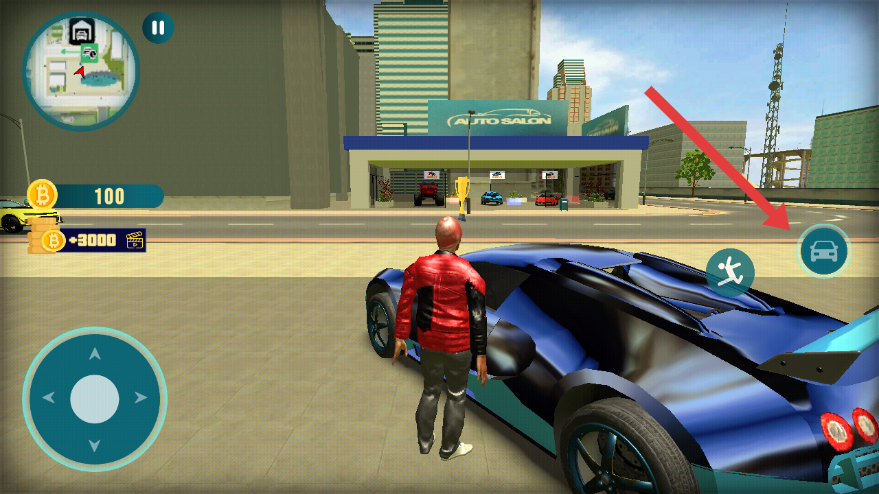 2、操控角色靠近车辆时,点击右侧汽车图标,进入驾驶的状态,操控车辆在城市中移动探索。
