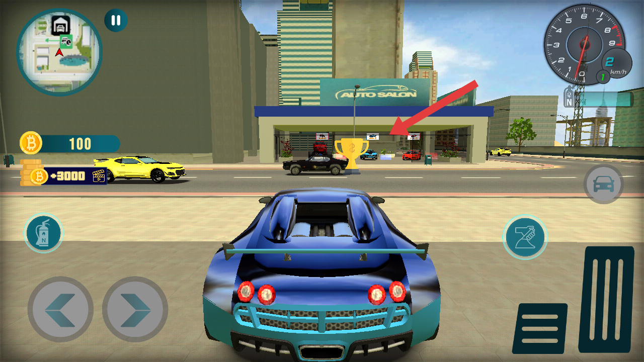 3、驾驶车辆时,跟随指引前往Auto Salon汽车沙龙,还需要拾取路途上的奖杯,可以解锁车辆的性能。