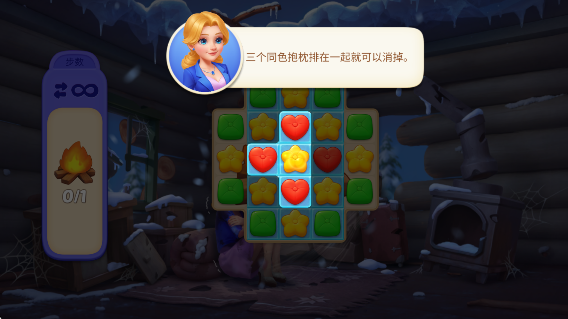 1、进入庄园,了解三消玩法规则,尝试完成首次消除获取资源,为庄园装修做准备,开启庄园经营之旅。