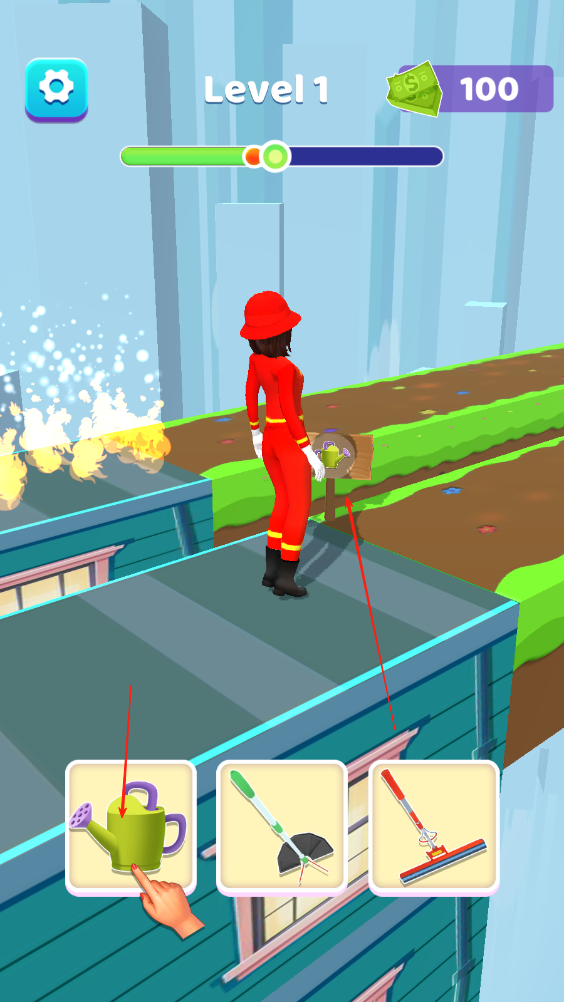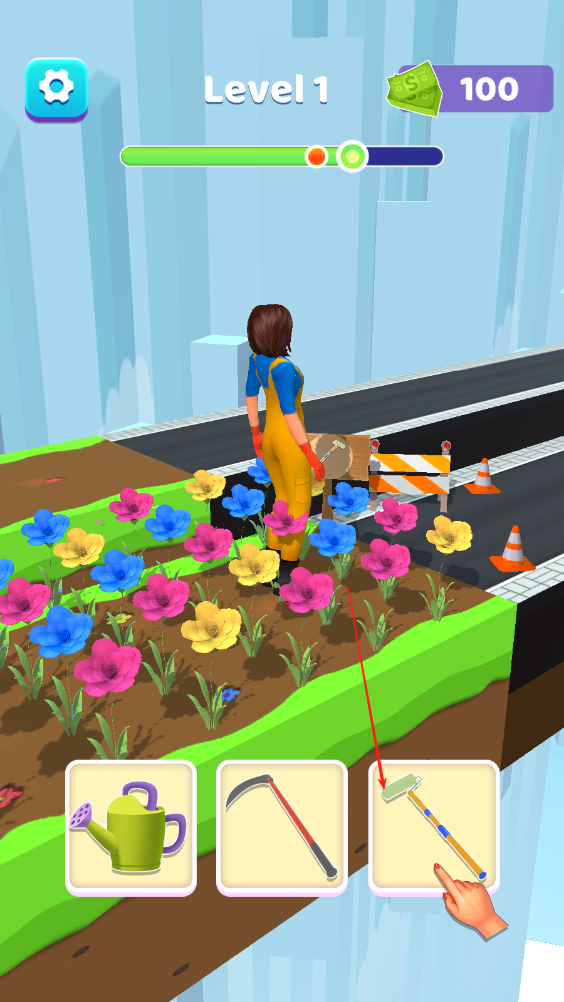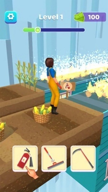 1、不同场景选择不同道具,化身正确的职业,继续前进,比如土地选择水壶让前方土地种出一片花地。