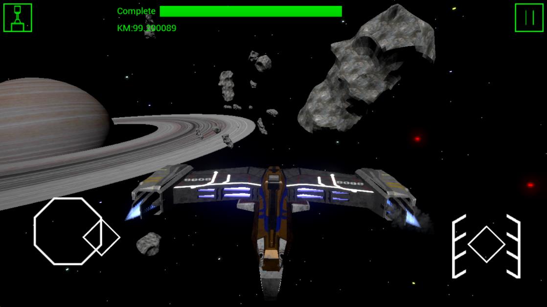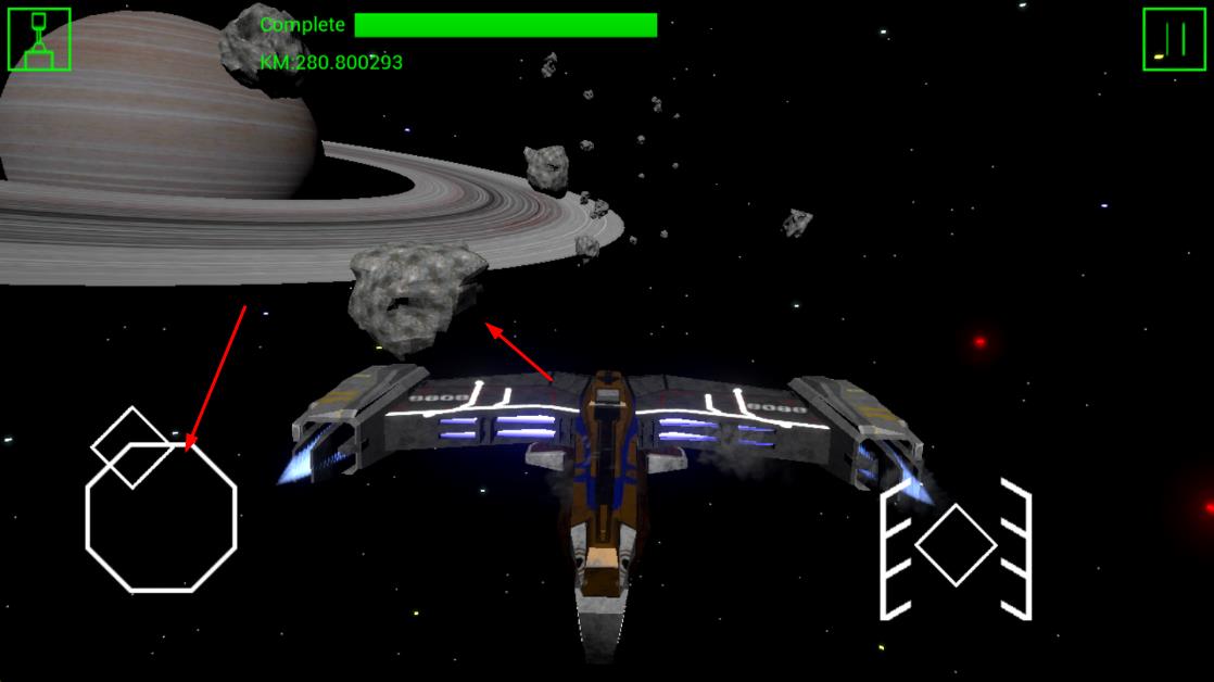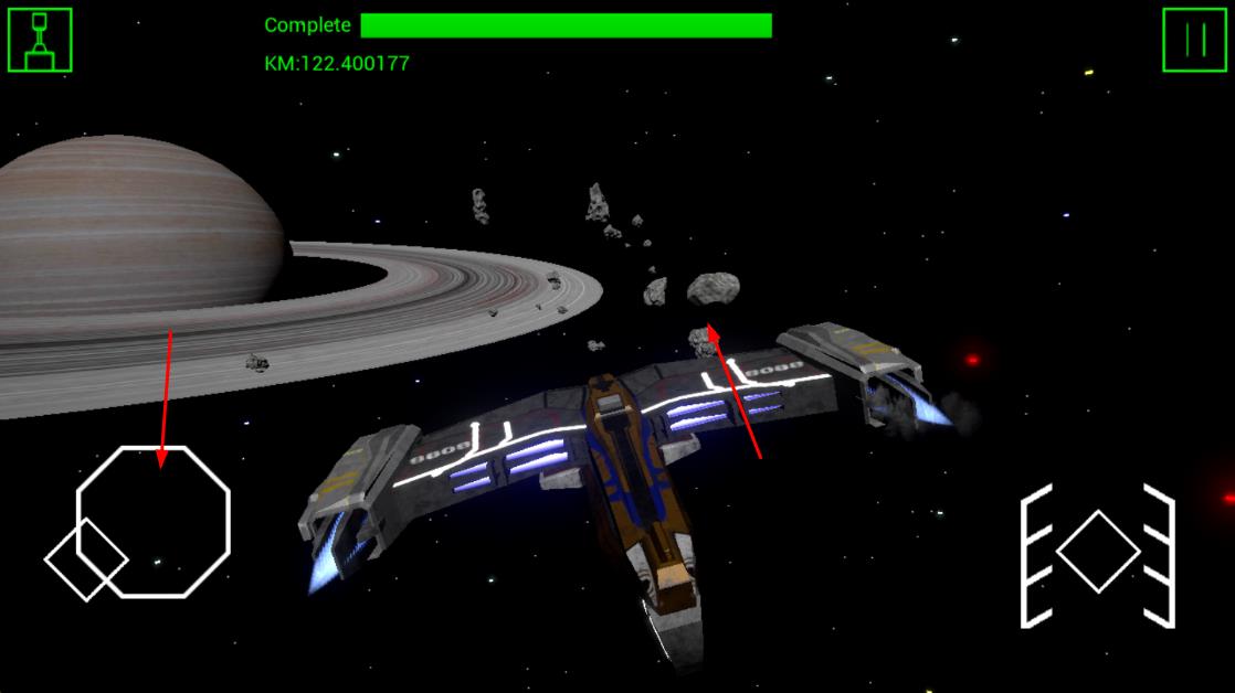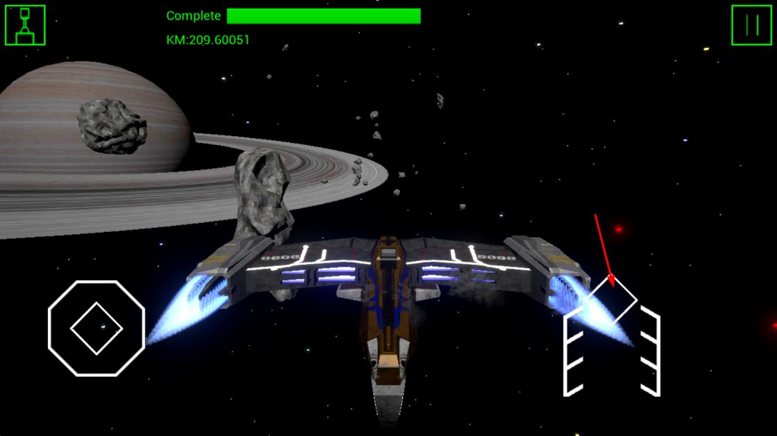 1、进入游戏后,操控太空舱在太空中航行,通过屏幕按钮调整方向与速度,探索周边星球、空间站等天体与设施。