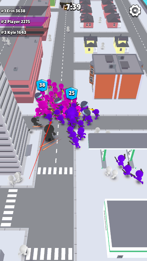 2、魔性循环玩法:收集队友→壮大队伍→击败对手→占领房屋→收集更多队友,形成简单又魔性的循环,让人不自觉沉浸其中,短时间内就能获得满满的游戏乐趣。