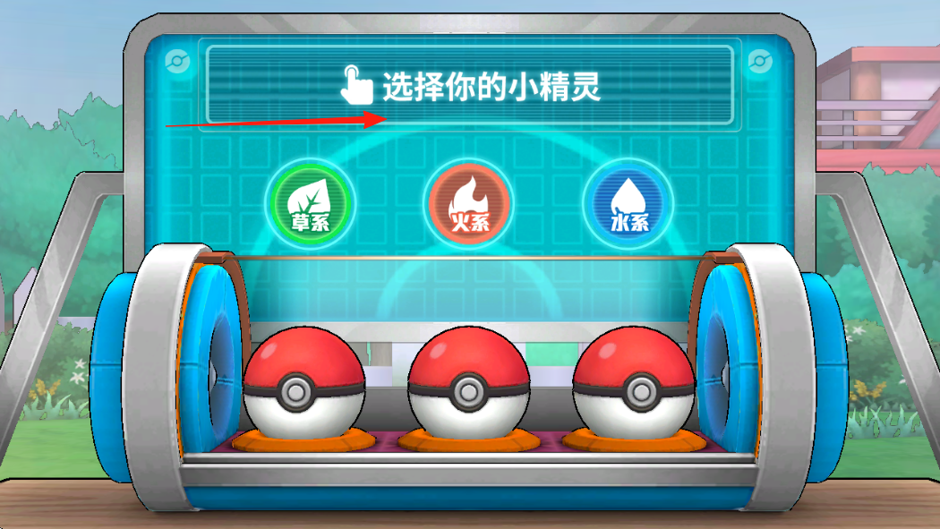 3、后续进入选精灵环节,界面有草系、火系、水系精灵球,根据喜好点击选择,开启宝可梦养成。