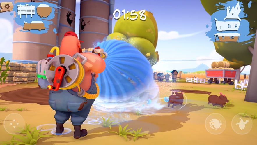 2、对战与清洗策略:联机对战中,搭配控制+输出武器组合比如一人用网兜控制对手,一人用高压水枪攻击,在清洗猪群时,针对顽固脏猪身上泥垢厚。
